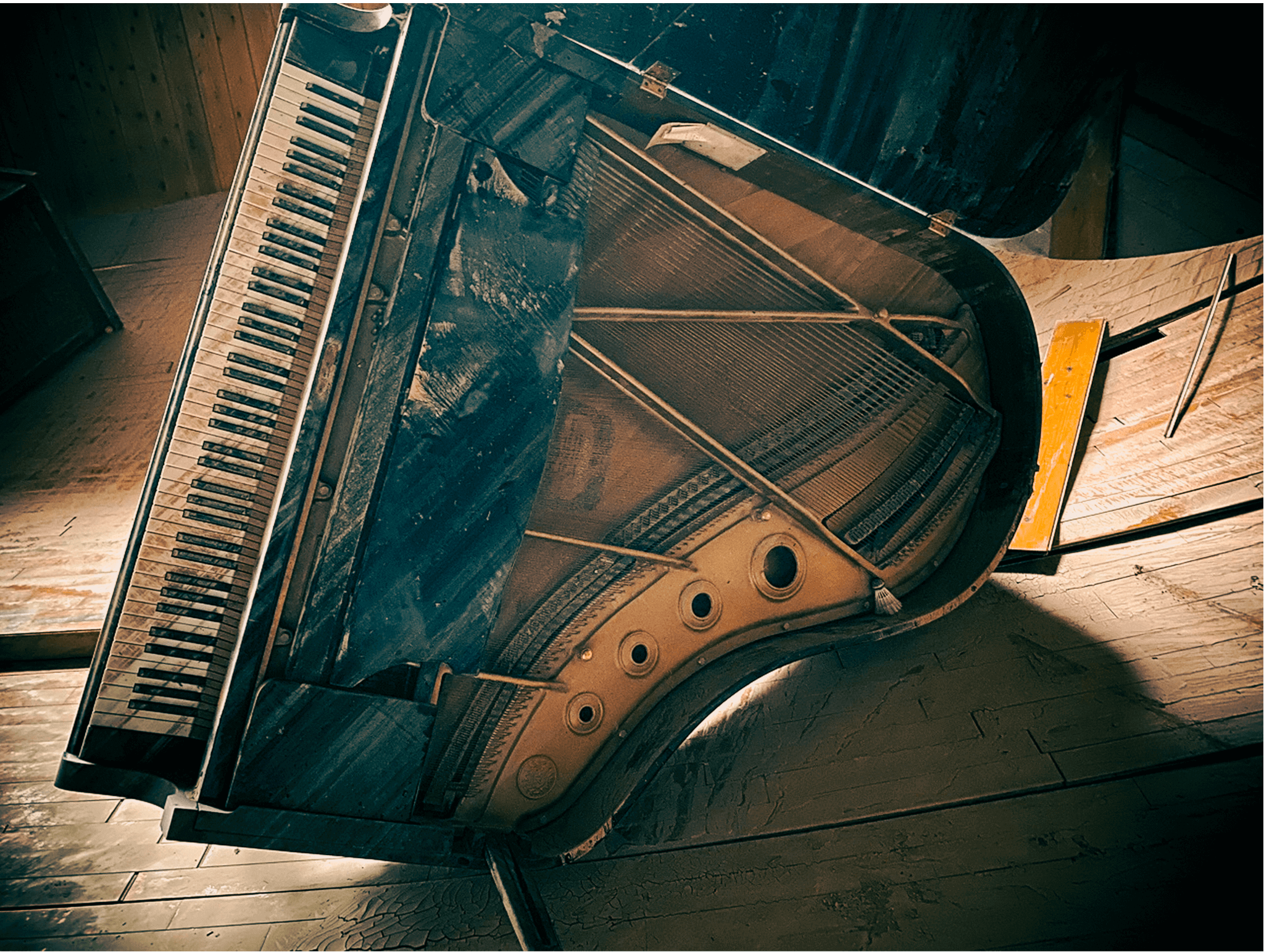 被災直後に渡小学校体育館で発見したピアノ